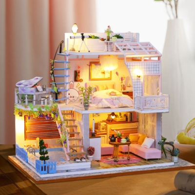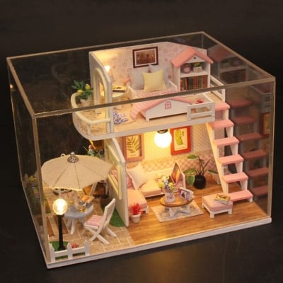 Pink Loft Dollhouse Miniature House Kit